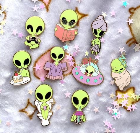 Aliens On Earth, Alien Enamel Pins, Cute Alien Gifts, Cute Enamel Pins, Funny Pins, Space Aesthetic, Uchuu Kei,UFO, Pin Gifts, Pin Collector