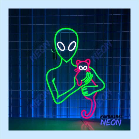 1Pc LED Alien Atmosphere Lamp, 22 X 19.5cm (8.66 X 7.67In), Neon Alien Lamp For Wall Decor, Bedroom Decor, Living Room Decor, Battery & USB Powered,Alien Blue