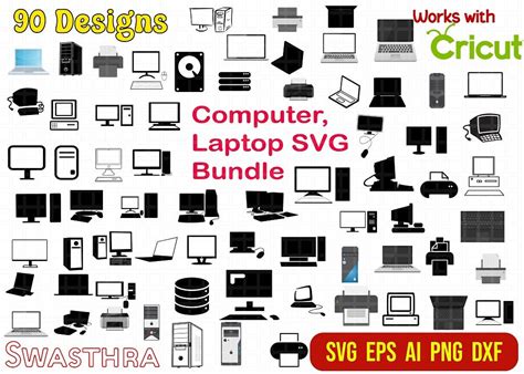 Computer SVG Bundle: Laptop, Desktop, & Monitor Clipart, Silhouette, Vector (Digital Files)
