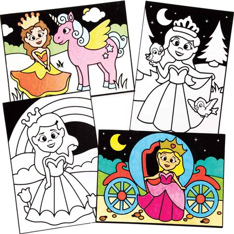 Princess Sand Art Pictures (Pack Of 8) 4 Assorted Designs, Self-Adhesive Pre-Cut Card Pictures