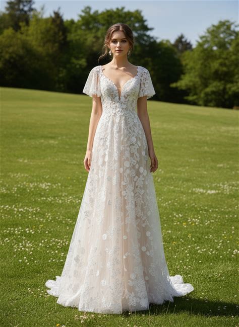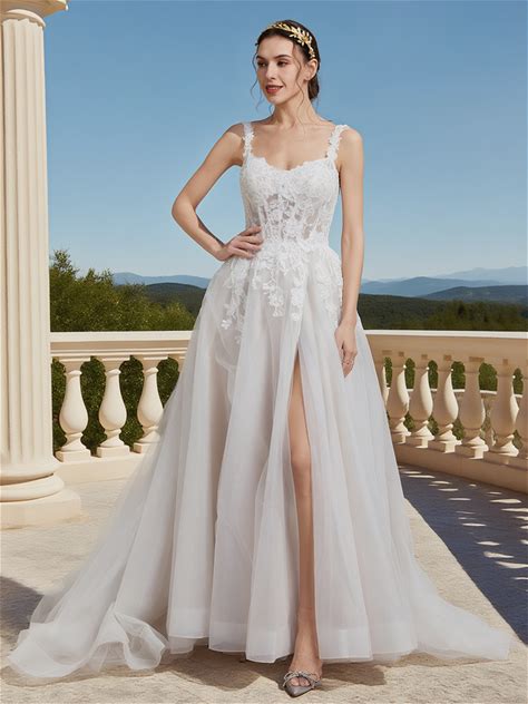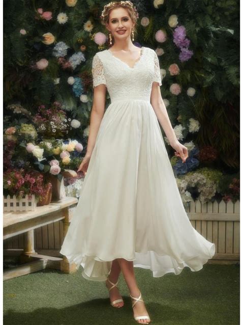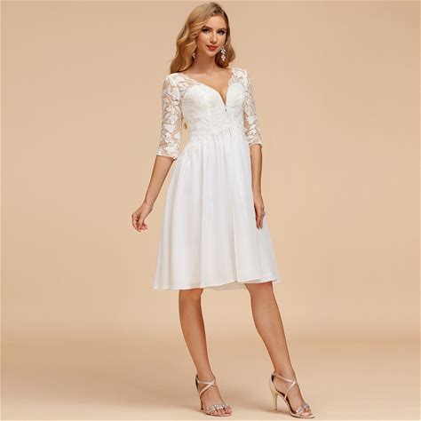 Romantic V Neck Split Lantern Sleeve Applique Dress Little White Dresses Bridal Shower Dress Engagement Dresses Wedding Dresses For Garden Wedding Party, For Valentine's Day Spring,XXL