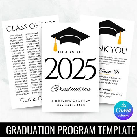 2025 Graduation Program Template, Editable 2025 Ceremony Card, Class Of 2025, High School & College Graduation Program, Instant Download