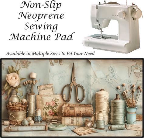 Non Slip Sewing Machine Pad Featuring Nostalgic Sewing Art, Craft Desk Protector, Sewing Machine Mat