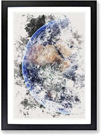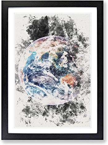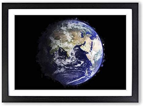 Big Box Art Planet Earth In Space Framed Wall Art Picture Print Ready To Hang, Black A2 (62 X 45 Cm)