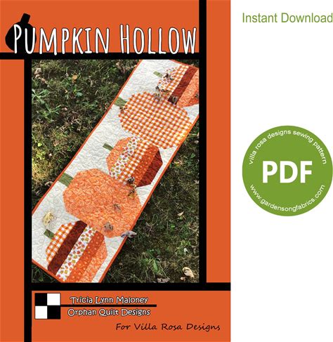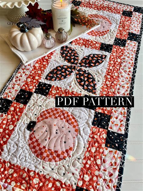 Pumpkin Table Runner Pattern, Fall Quilt Topper, Small Mini, PDF Download, Halloween Farmhouse Decor