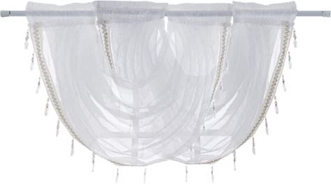Waterfall Valance 2 Valances (145 X 94Cm),2 Valances,Luxury White Diamond Sheer Embroidered Waterfall Window Valance Tassel Trim
