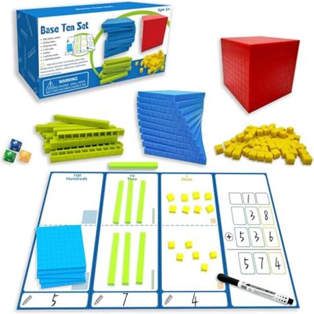 Toyvian 1 Set Base Ten Blocks: Place Value Blocks - Math Manipulatives For 2nd Grade Kids - Counting Cubes For Kindergarten And Elementary Classroom -