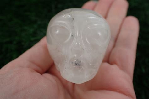 Hand Carved Quartz Crystal Alien Skull: Healing Home Decor