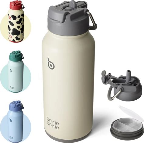 BOTTLE BOTTLE Insulated Water Bottle 950Ml(32Oz) Stainless Steel Sports Water Bottles With Straw Dual-Use Lid Drink Flask Design For Gym With Pill Box