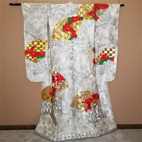 Vintage Japanese Wedding Kimono Kakeshita Formal Bridal Gown - Kiji Blooms