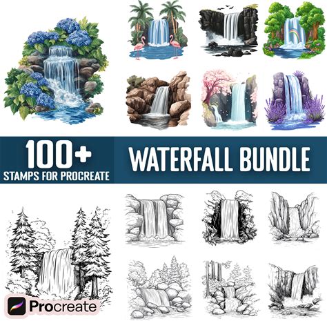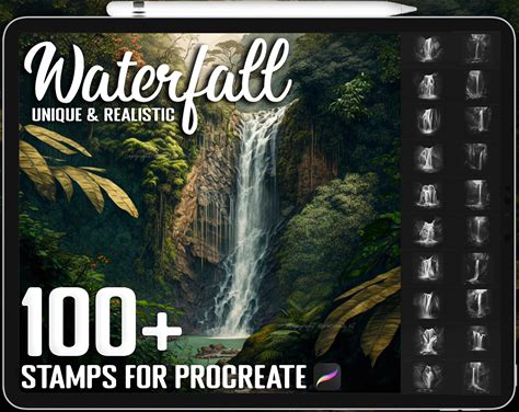 100+ Procreate Realistic Waterfall Stamps, Waterfall Brushes For Procreate, Instant Digital Download