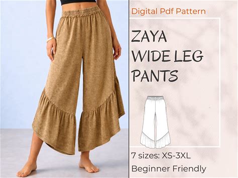 Wide Leg Palazzo Pants Sewing Pattern PDF, Elastic Waist Ruffle Trousers With Pockets For Women, Easy Beginner Friendly, XS-XXXL