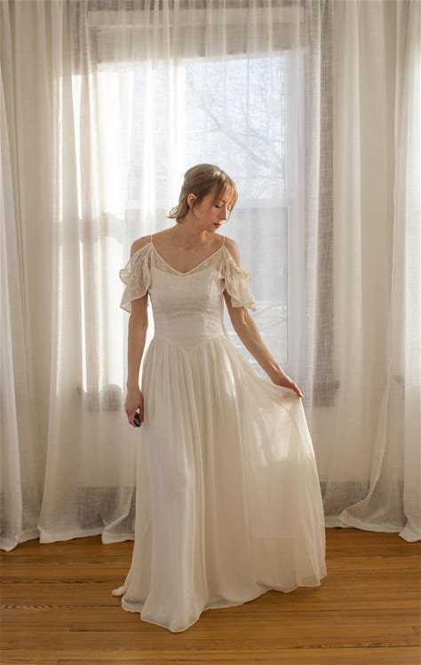 1960S Vintage Wedding Dress, Peggy French Couture, Cream Chiffon Cape Sleeves, UK 16/18