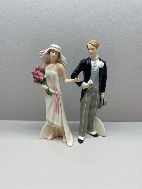 Vintage Goebel Porcelain Bride And Groom Figurines - Hand-Painted Art Deco Wedding Pair
