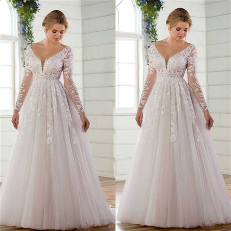 Wedding Dresses Long Sleeves V Neck Beach Boho Lace Elegant Bridal