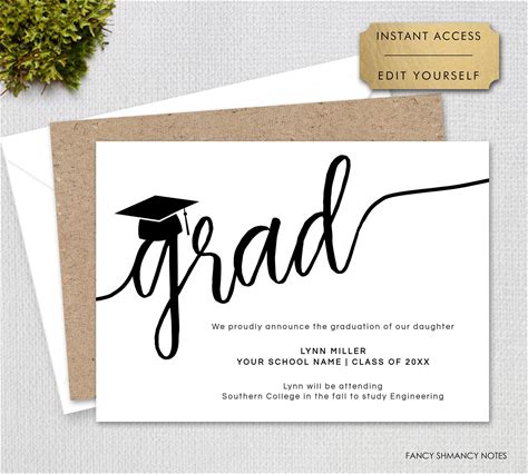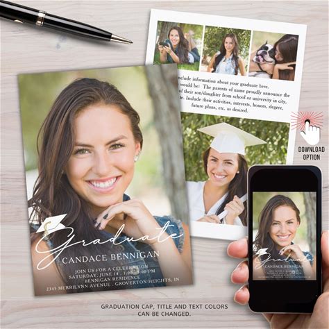 Graduation Announcement Invitation, Self-Edit, Script Grad & Cap, Print Or Text, Instant Download, CORJL Editable Template-521