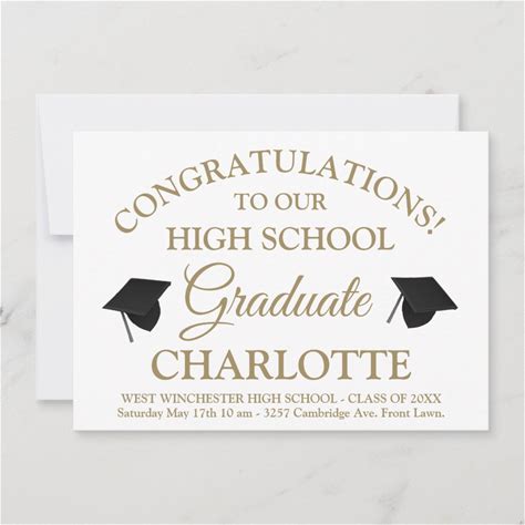 Elegant White Gold Custom Script Text Graduation Invitation